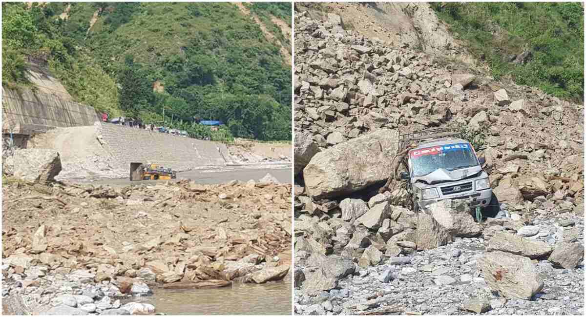 बिपी राजमार्गमा सुख्खा पहिरो , बस र