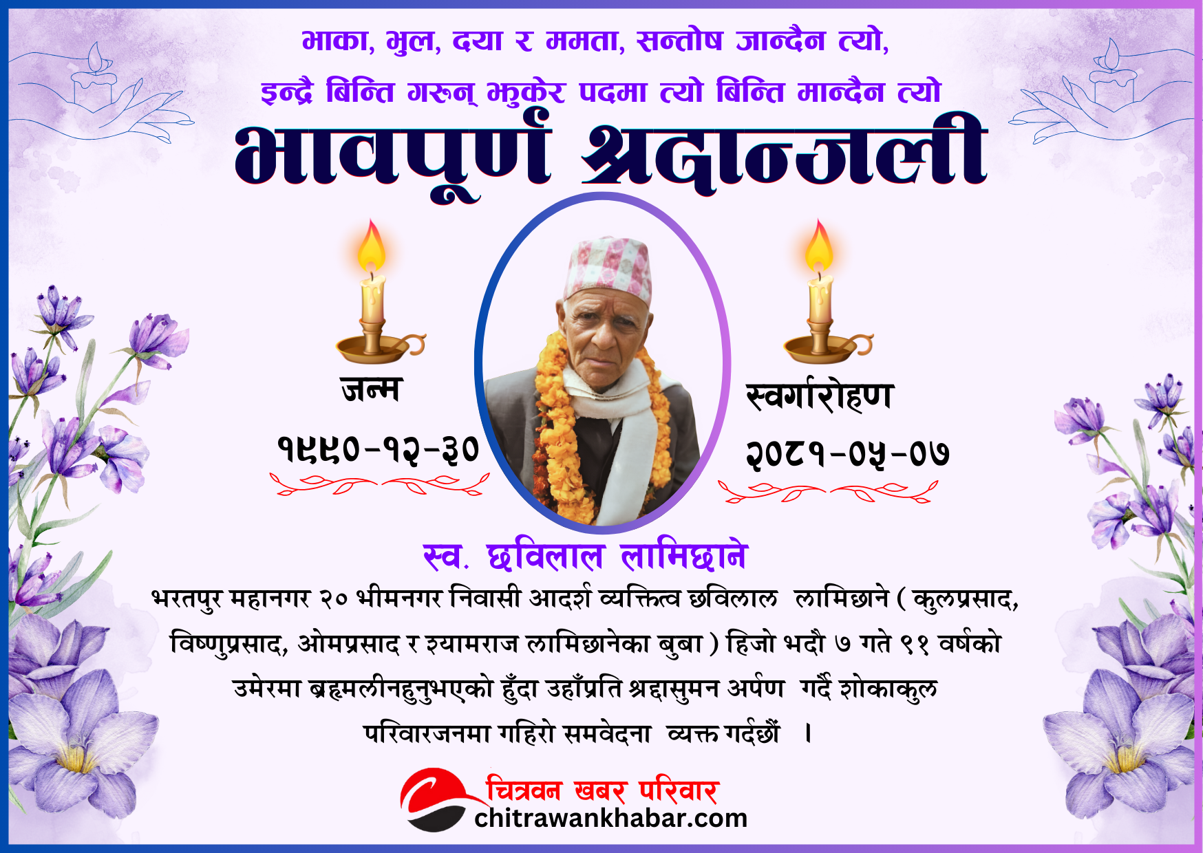 रेडक्रस चनौली उपशाखाका सभापति लामिछानेलाई पितृशोक